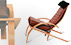 Poltrona Gula, 1998 | Cliente: Particular. | Materiais: Madeira de carvalho; cabo e esticador em aço inox; pele estofada.