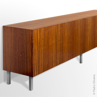 Aparador Linear, 2006 | Cliente: Particular. | Materiais: Lamelado de mutene e inox.