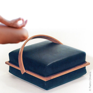 Banco/Apoio de pés Lotus, 1998 | Cliente: Particular. | Materiais: Madeira de carvalho; pele estofada.