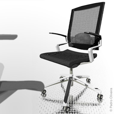 Cadeira de escritório Pelican, 2002 | Cliente: ICF (via estúdio Villa Design) | Materiais: Alumínio e estofo em espuma revestida a nylon.