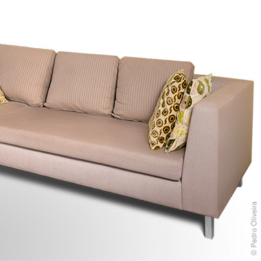 Sofá Trapezio, 2006 | Cliente: Particular. | Materiais: estrutura em madeira, estofo em espuma poliuretano, tecido.